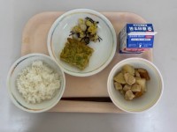 2月21日の献立は、ご飯、牛乳、チキンティッカ、ごぼうサラダ、ジャーマンポテト、キャベツのみそスープ です。