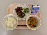 7月2日(水)の献立は、夏野菜スパゲッティ、牛乳、ツナと野菜の炒め物、フライドポテト、クラッシュゼリー です。