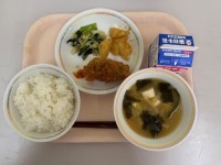 10月22日(水)の給食は、ごはん、牛乳、いかのかりん揚げ、ほうれん草のごま...