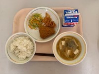 11月21日(金)の献立は、ごはん、牛乳、くじらの竜田揚げ、はくさいのおかかあえ...