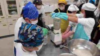 3年生が算数の授業で、「どちらが重いかを考えよう」をめあてに学習しました。授業のはじめに秤を作り、えんぴつなどの重さを比べました。