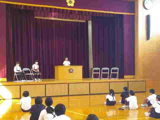4~6年生が、2学期の児童会役員を決めました。立候補した児童一人一人が舞台に上がり、演説を行いました。立候補した全員の、渋田小学校をよりよい学校にしたいという思いが伝わってきました。