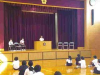 児童会や専門委員会の代表者から、1学期の振り返りが報告されました。その後、1学期終業式が行われました。校長先生のお話の中で「挨拶を頑張れた人」の問いかけに、多くの子供たちが手を挙げました。これからも気持ちのよい挨拶が交わされる学校をみんなでつくっていきましょう。