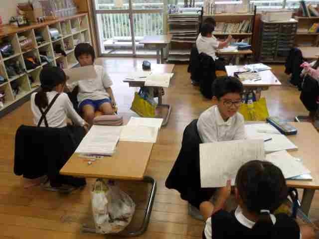 3年生が教材「ちいちゃんのかげおくり」では、登場人物の気持ちの変化をとらえて自分の感想や考えをもつことを学習しました。その後、関連図書として戦争をテーマに書かれた物語を読みました。選んだ物語の場面の移り変わりを捉え、「ちいちゃんのかげおくり」と関連付けて感想を伝え合いました。