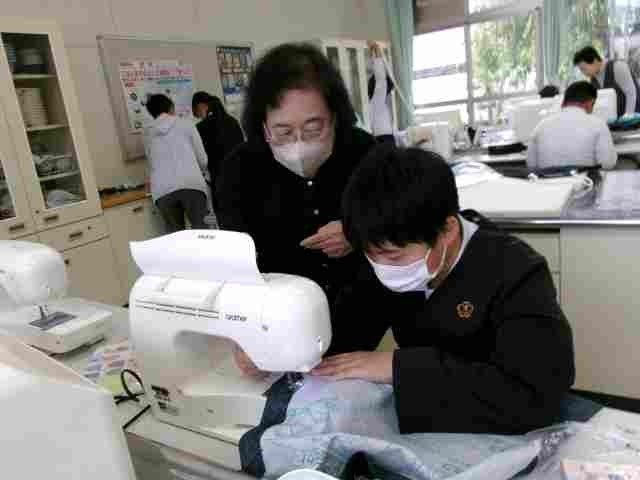 5年生のエプロン作製が最終日を迎え、ポケットや名前などの飾りをつけて、オリジナルのエプロンが完成しました。6年生のナップザックに続き、長い期間ボランティアの方々にご協力いただきました。本当にありがとうございました。