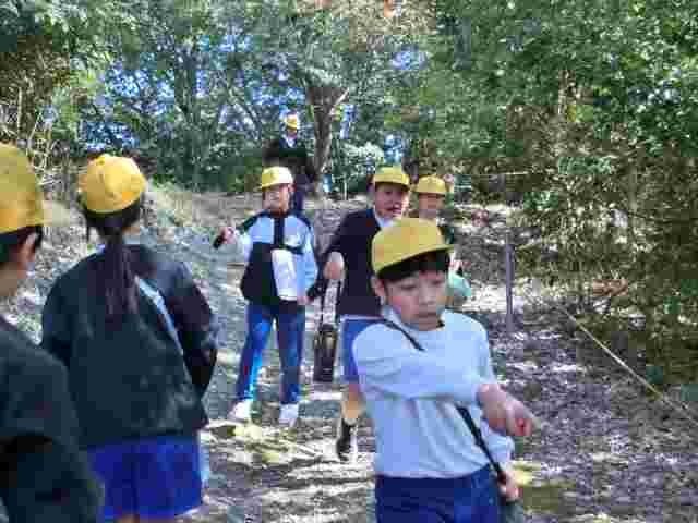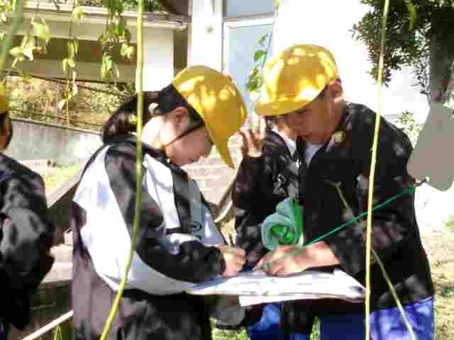 5年生の宿泊体験の様子を紹介します。入所式・オリエンテーションのあと、フィールドサーチを行いました。木漏れ日の中、班で協力して問題を探したり解いたりしました。