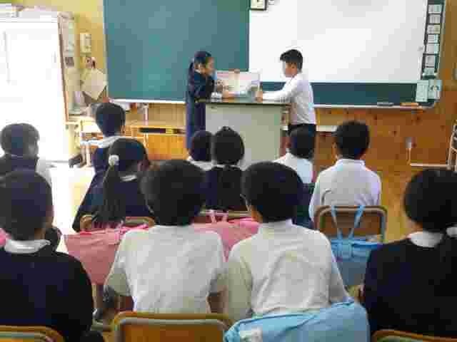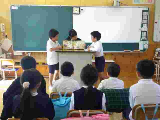 3年生が、国語科の学習の発展的な活動として、1・2年生に読み聞かせをしました。友達と話し合って本を選び、読む練習を繰り返して、今日は3冊の絵本を読みました。1・2年生は、楽しみながらしっかり聞いて、思ったことや感じたことを発表することができました。