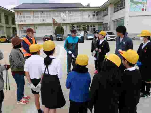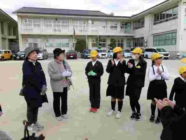 今年度は、児童が縦割り班に分かれて、6つのコース(西渋田コース、児童館コース、公民館コース、中村・大橋コース、志賀コース、新城コース)で活動しました。渋田では、道路沿いのゴミ拾いをしました。志賀の丹生神社では、まるで黄色い絨毯のような美しいイチョウに感動しながら、たくさんの葉を集めました。新城地域交流センターでは、掃除だけでなくパンジー植えや絵画鑑賞もさせていただきました。子供たちにとって、保護者や地域の方々と会話を楽しんだり、校区内でも行ったことがなかった地域のことを知ったりすることができて、とても有意義な活動となりました。
