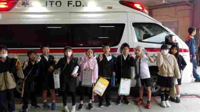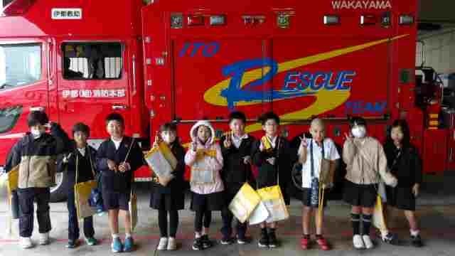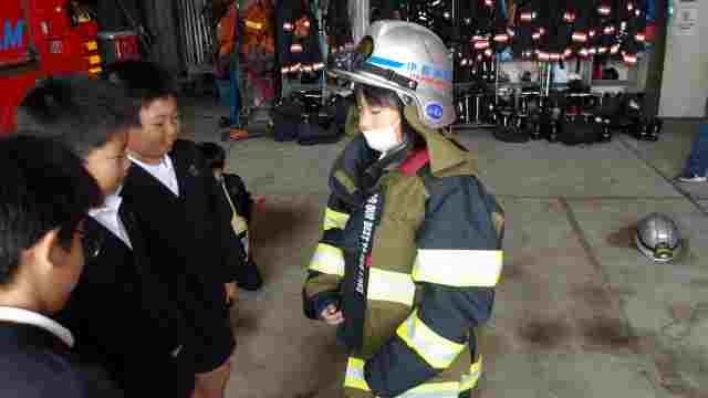 3年生が社会科の学習で、地域の安全を守る働きについて理解を深めるために、伊都消防組合を見学させていただきました。働いている人の勤務体制や待機の仕方、訓練、施設・設備などについて、実際に見聞きして関心を高めることができました。雨天の中、放水場面を見せていただいたり、質問に対して丁寧に答えていただいたりしました。ご多用の中ご協力いただきました皆様、ありがとうございました。