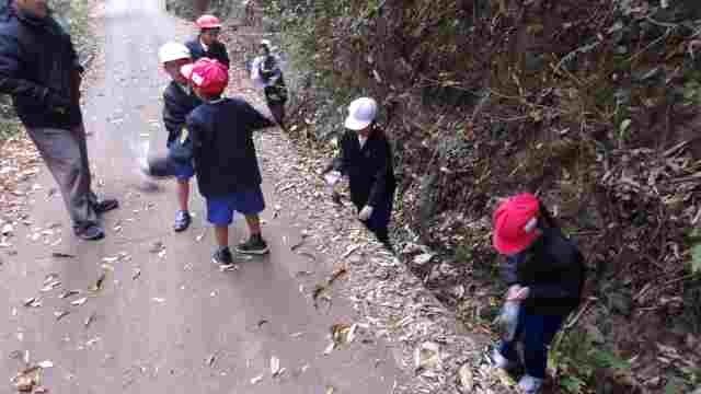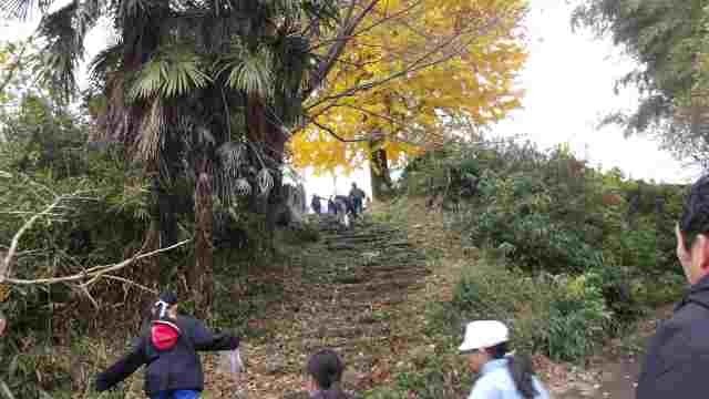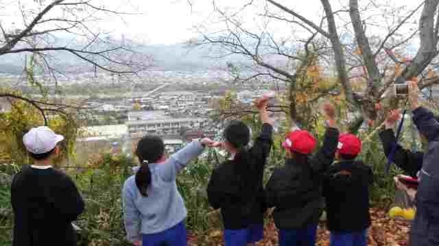冷たい風が吹く中でしたが、1・2年生が元気に薬師山まで秋を探しに行きました。急な坂を上りきると、黄色に染まった大きな銀杏が出迎えてくれました。見晴らしのよい北側にまわり渋田小学校に大きな声で呼びかけると、学校で待ってくれていた先生方が手を振り返してくれました。たくさんのドングリや銀杏の葉を袋に詰め込んで、学校に戻ってきました。