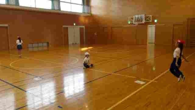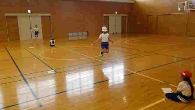 1・2年生が体育の授業で、なわとびを跳んでいました。まずは、1分間でどれだけ続けて跳べるかを計測しました。その後、先生の跳び方を見本として、どうすればたくさん跳べるかをみんなで話し合うと、肘の位置やなわの回し方について意見が出ました。出された意見を意識して跳んでみると、1回目よりも記録を伸ばすことができた人がいました。