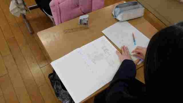 6年生が国語の授業で、自分のおすすめするものをパンフレットにする学習をしました。アニメや曲、お菓子など、集めた情報や伝えたい内容を整理し、割り付けを工夫して限られたスペースの使い方を考えました。
