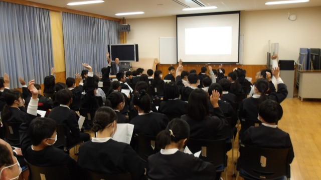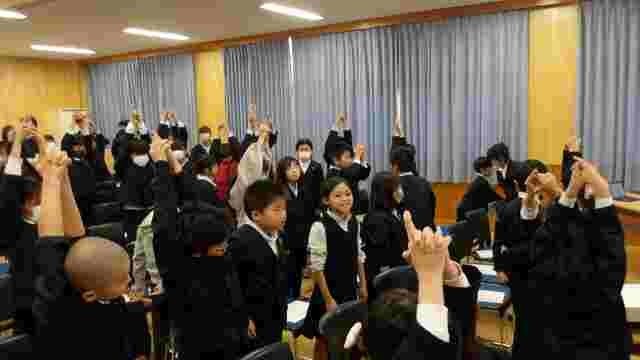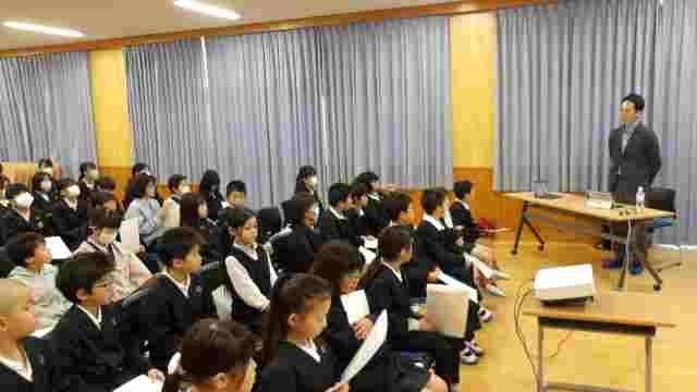 和歌山県立医科大学の先生にご来校いただき、子どもロコモ健診の結果説明をしていただきました。まず、スクリーンタイムが長くなると体力が低下し疲れやすくなることや、立ったり座ったりしているときの姿勢の大切さについて教えていただきました。また、「寝る子は育つ」というように、小学生には睡眠時間を8時間は確保してほしいことや、睡眠時間や栄養との骨密度の関連性について説明してくださいました。最後に、さまざまなストレッチを教えていただきました。