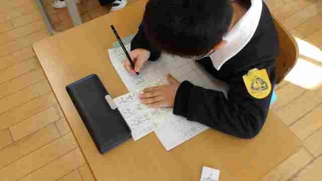 1、2年生が書初め競書会に向けて練習しました。初めに先生から一字一字丁寧に練習することや、手本を横に置いて練習することなどの説明がありました。練習が始まると、集中して黙々と取り組みました。清書は来週となっているので、一生懸命練習しましょう。