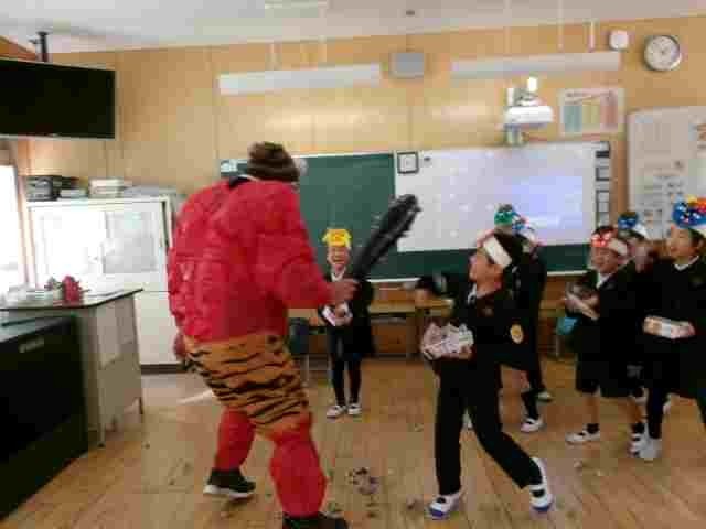 節分は各季節の始まりの日の前日を指し、「季節を分ける」節目を意味するようそうです。現代では特に、1年の始まりとして重んじられた立春の前日に、邪気や疫病(鬼)を追い払い、福を招くために豆まきや恵方巻を食べるようになってきたようです。そんな節分の今日、朝から子供たちは鬼を追い払うため、新聞紙を豆のように丸めて準備していました。そんな子供たちがそわそわしていた昼下がり。教室に現れた鬼でしたが、準備万端で待ち構えていた子供たちによって、あっけなく追い払われました。日本の素敵な年中行事を肌で感じた鬼でした。