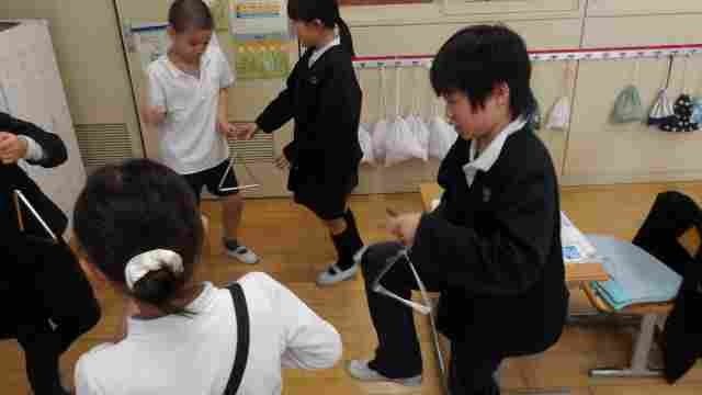 3年生の理科の授業で、「ものから音が出ている時は、どのような様子なのだろう」をめあてに実験しました。音が出ているときと出ていないときを比較したり、大きい音と小さい音を比較したりして気づいたことを発表しました。音が出ているときは、ものが震えていることや、大きい音ほど震えが大きくなることを学習しました。