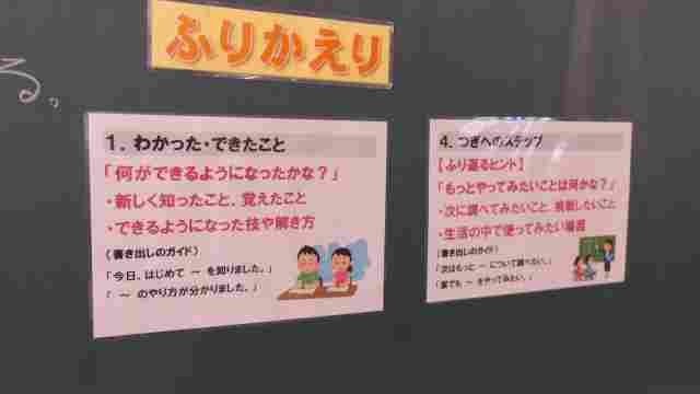 5年生が、マグロをいかした町づくりについて学習しました。和歌山の豊富な漁業資源や、ブランド化について子供たちは知っていることを次々に発表しました。授業の終末には、わかったこと・できたこと、次へのステップなどの振り返りの視点が先生から示され、子供たちはその視点で振り返りを書きました。