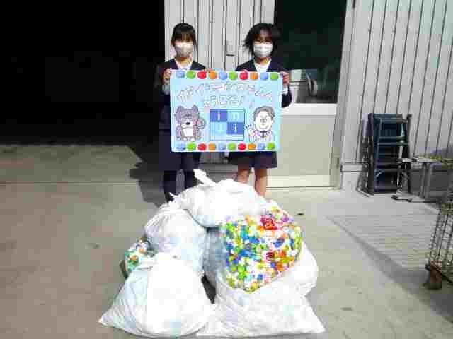 6年生がSDGsの学習の一環で、地域の方々の協力も得ながら集めたエコキャップを、回収している会社に持って行きました。大きな袋に10袋を持参し、軽量すると50㎏になりました。これらはNPO法人に寄付され、その売り上げが世界の子供のためのワクチンに使われます。回収にご協力いただき、ありがとうございました。