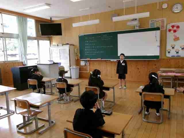1年生は初めての教室で先生の話をよく聞きながら、一つひとつの活動に一生懸命取り組んでいます。