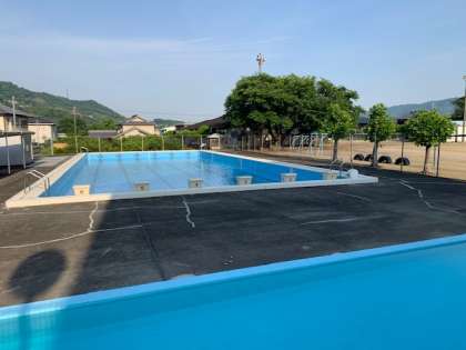 きれいになったプールにもずいぶんと水がたまってきました。もうすぐ泳げるようになります。楽しみですね。