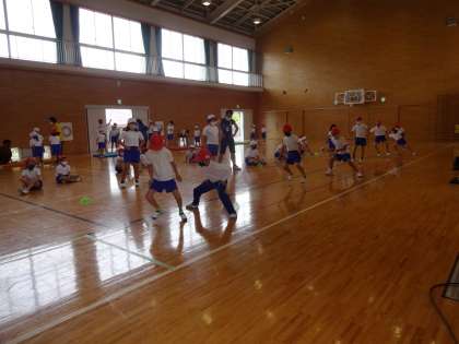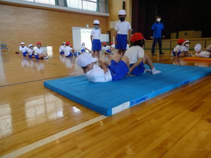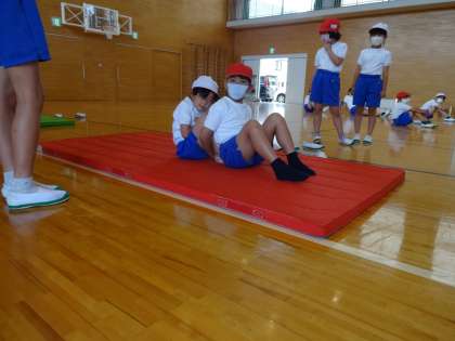 体育館では、「反復横跳び」「上体起こし」です。