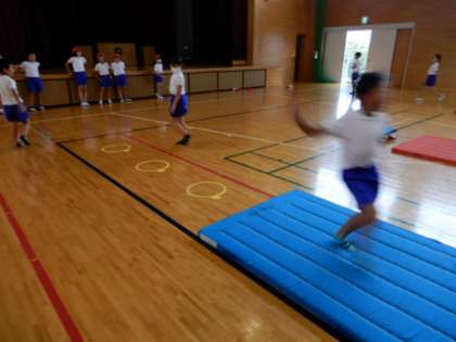 踏み切りのポイントを体に覚えこませるトレーニングに励んでいます。