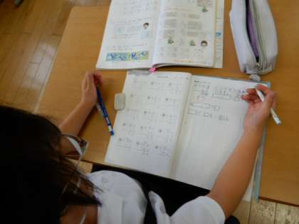 計算の間違いを説明する問題に取り組んだ後、まとめの計算問題を一生懸命解いています。