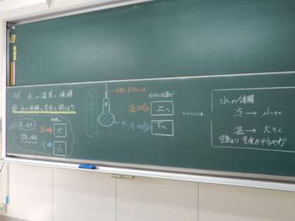 温度による水の体積の変化の調べる実験に取り組んでいます。