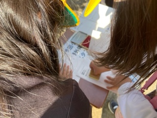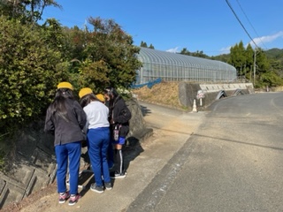 スタンプラリーです。天野地域を散策して、チェックポイントで自分たちで作ったスタンプを押していきます。