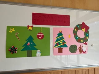 クラフトクラブはクリスマスの壁面掲示、お花クラブはアレンジメントをつくりました。