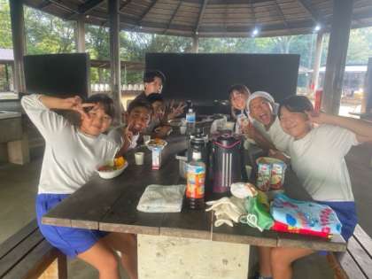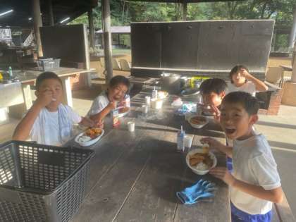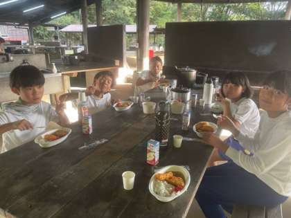 カレーが完成しました。おいしい、おいしいと言いながら、食べてます。