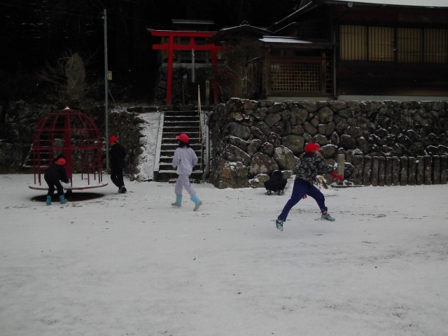 今日は、運動場に雪が積もりました。とても寒いですが、子どもたちは元気に雪遊びをしました。
