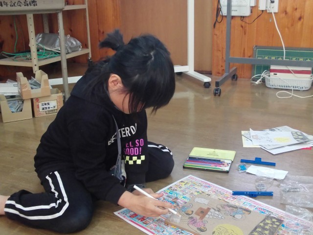 3年生は、釘打ちをする台の絵をていねいに仕上げていきました。