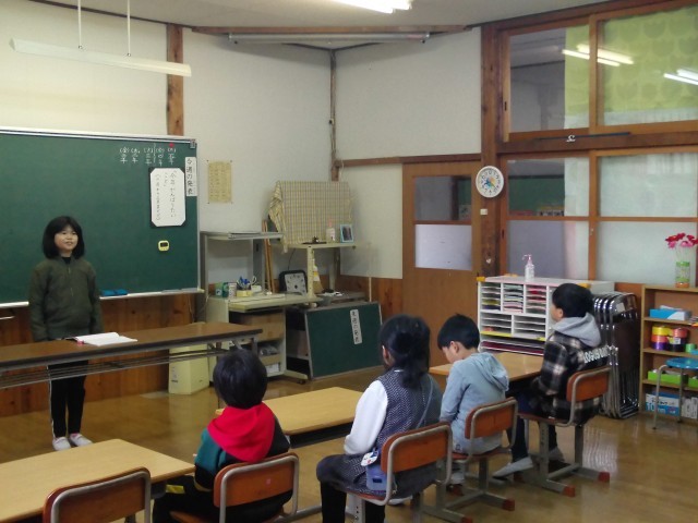 今回のテーマは、「今年がんばりたいこと(2・3月で)」です。今日は、5年生のスピーチです。がんばりたい教科という内容の発表でした。がんばりたいことを学習の中から見つけていたことに、下級生は感心していました。上級生のスピーチに学びがありました。