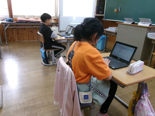 5・6年生は、タブレットを使って自分の音読を録画し、AIを使って自分の音読の正確さを確認していました。