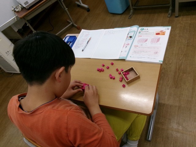 具体物を操作することで、ひとつひとつ確認しながら進めることができます。あとで説明をするときも、理由をきちんと話すことができますね。