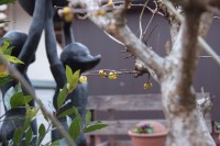 幼稚園の子どもたちがお母さんと一緒に園庭にお散歩に来ました。二人ともしっかりマスクをして外出です。