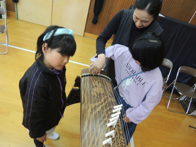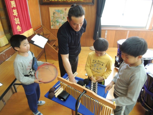 終了後、楽器の体験をさせてもらい、子どもたちは興味津々でした。