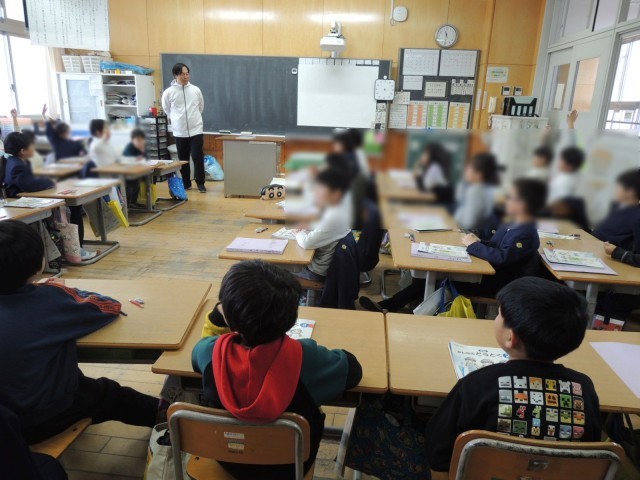 交流学習で笠田小学校へ行きました。各学年の教室に入れてもらい、4時間目の授業を受けました。給食と昼休み、今回は縦割り班の清掃までいっしょに活動させてもらいました。はじめはドキドキしたけれど、たくさん話しかけてくれたので、すぐに緊張もほぐれました。昼休みは、一緒に楽しくできる遊びを考えてくれていました。帰るときには、「もっといたい」「またきてね」などお互いに話していました。笠田小学校のみなさん、ありがとうございました。