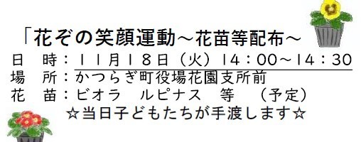 今日は「花ぞの笑顔運動」で花苗の配付をします。