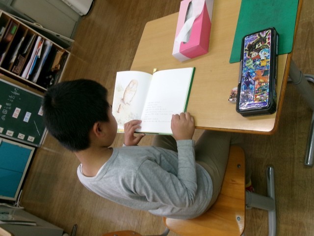 昨日、日直の先生がおすすめしてくださった本を読んでいる児童もいました。
