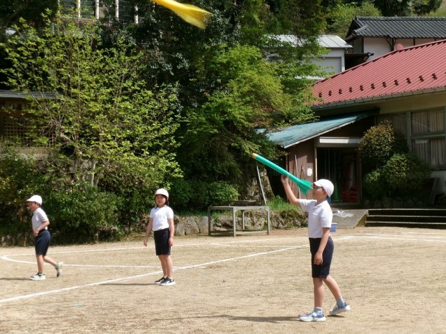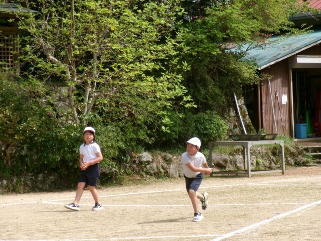 最後にソフトボールを投げて記録をとりました。昨年度より、10m近く記録が伸びた児童もいました。