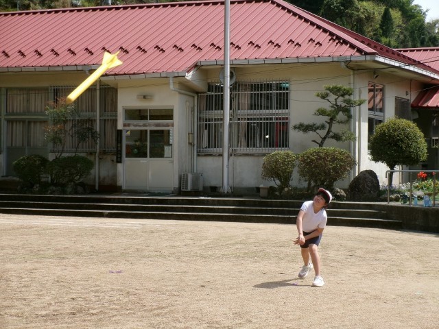 体育の授業でソフトボール投げをしました。