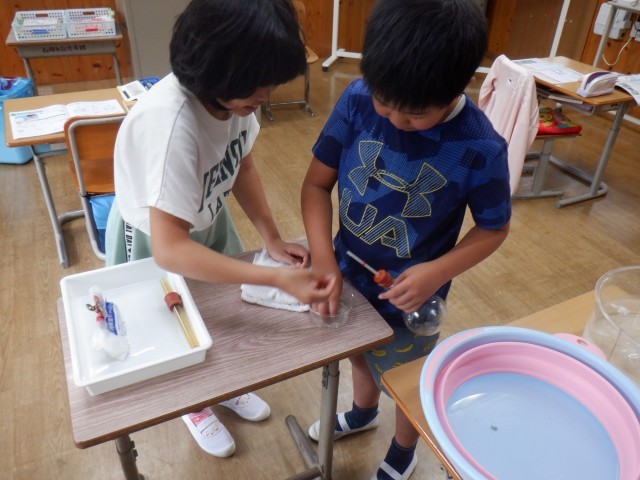 「先生、この花も。」と2年生が、地面におちていたヘチマの花を持って来ました。廊下の小さな花をさすコップの水に浸してあげようかと言うと、「入れてきます!」と言って走っていきました。花を見て、「きれいやな。」、「しぼんできてるな。」、「これ、水に入れてあげようかな。」と言える子たちを見ていると、うれしくなります。