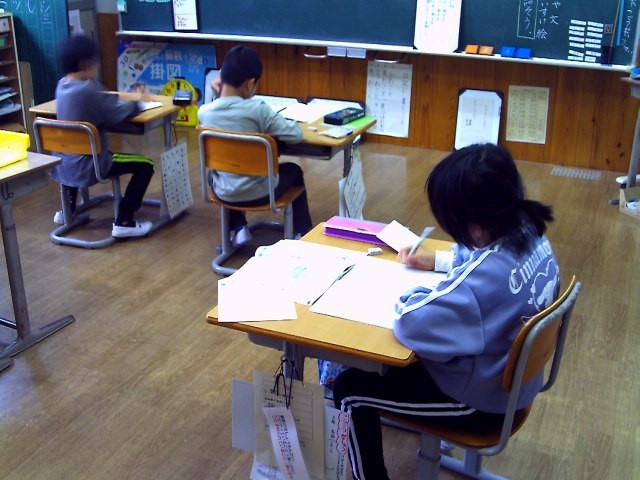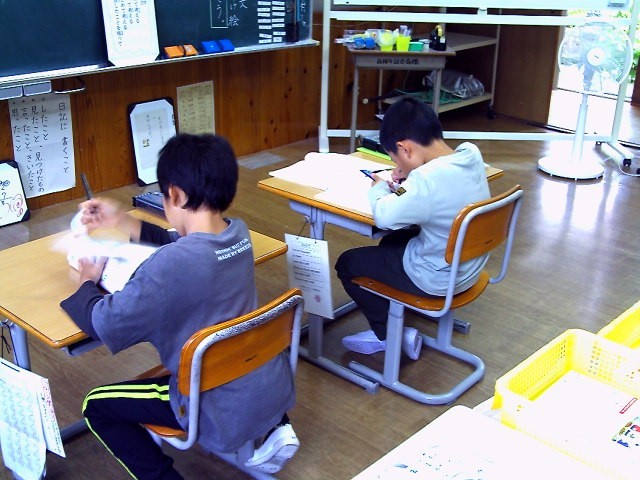 今日の国語、漢字の練習は、「集中して、しっかりと書くぞ。」と3人で気合いを入れてスタートしました。鉛筆の音だけが聞こえ、目線は、漢字に集中しています。やり終えたときに、「つかれた。」といい顔でした。「がんばったからやな。」と言う声が。がんばったあとは、いい顔です。よくがんばりました。