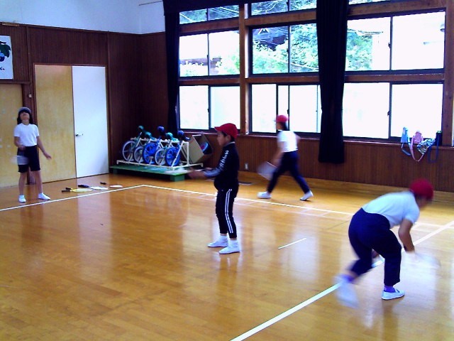 今日の体育は、高跳びとバトミントンをしました。少しずつコツをつかめるように、練習をくり返します。