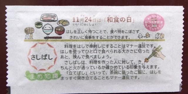 今月の海苔は、24日が『和食の日』ということで、箸の使い方や和食に必須の出汁について紹介しています。デザインは全部で8種類あります。