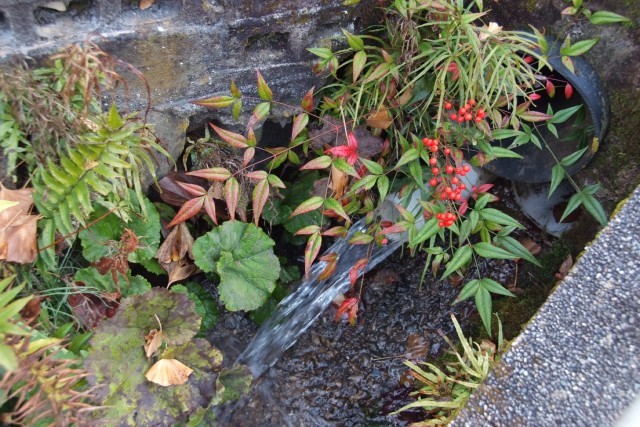 中庭の泉水から、川霧のような白いものが見えみなで覗き込んでいます。