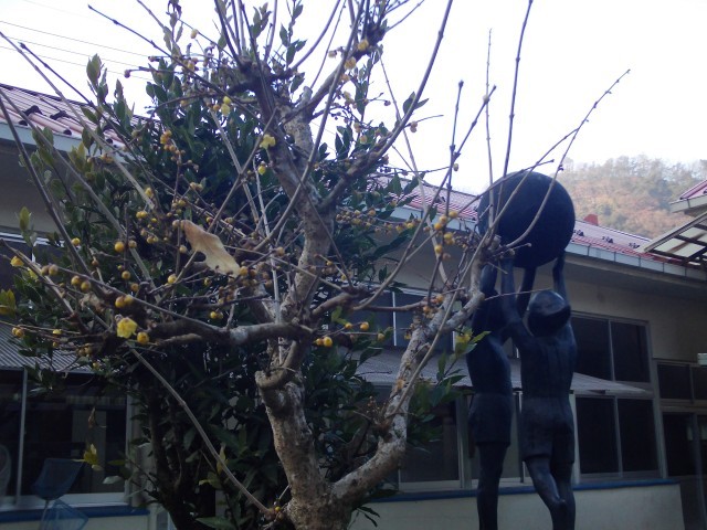 ロウバイのつぼみが大きくなってきました。いい香りです。