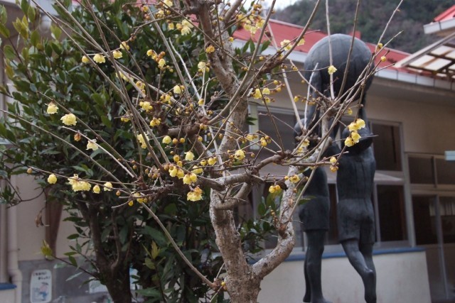寒さが少しやわらいだので、昨日は、5時間目の生活科と総合的な学習の時間に、学校の周囲の観察に出ました。久びりの観察です。寒さの中でも、立春を過ぎ植物のつぼみがふくらんできました。中庭のロウバイも花開いてきました。いっしょに香りをかいでみました。